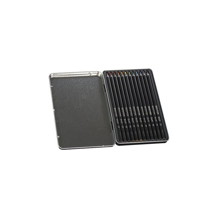 Crayons de couleur sans bois, en résine de synthèse. Mine très résistante. Forme arrondie. Corps et gaine noir mat. Facile à tailler.