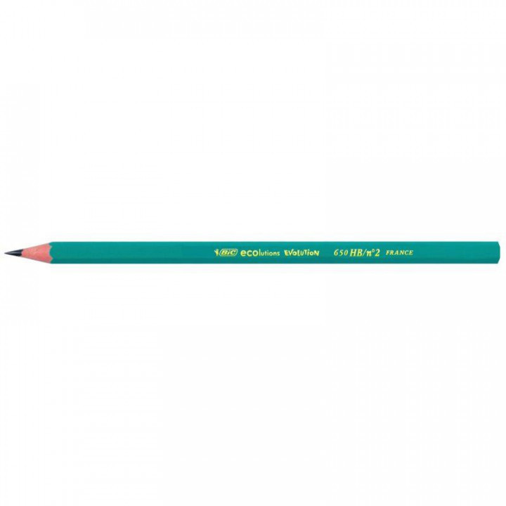 Boîte de 12 crayons graphite Évolution HB. Résine de synthèse, résiste aux mordillages. En cas de bris, la résine ne provoque pas d'écharde.