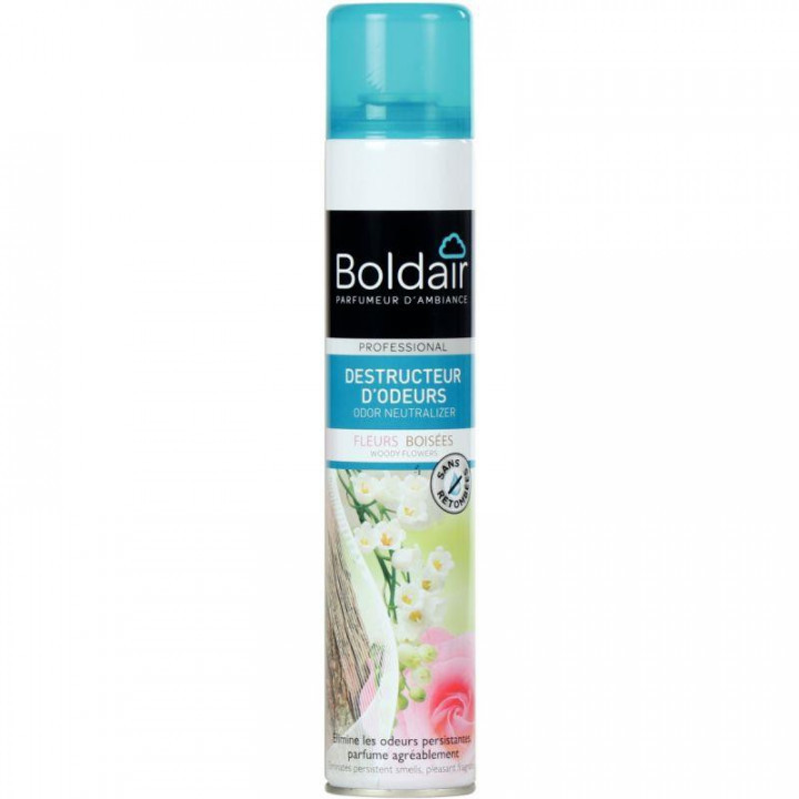 Aérosol 500ml destructeur d'odeurs fleurs boissées. Absorbe, neutralise et détruis les mauvaises odeurs sans les masquer ! Pulvérisation sèche sans retombées humides. Efficacité longue durée.
