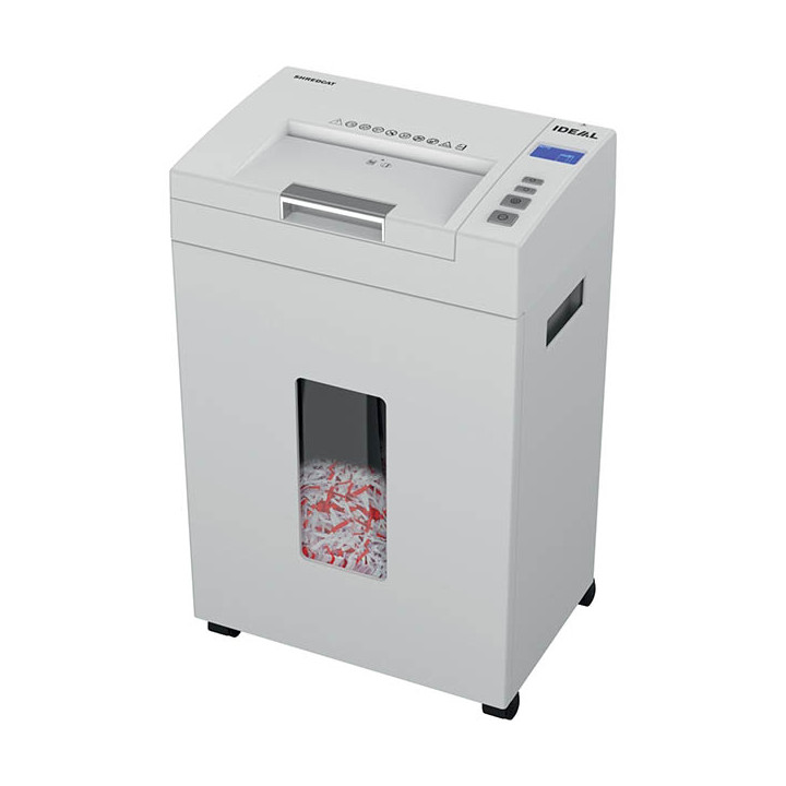 Destructeur 8292 Shredcat coupe croisée 200 feuilles. Détruit jusqu’à 200 feuilles. Possibilité d’alimenter manuellement le destructeur jusqu’à 10 feuilles. Utilisation intuitive grâce au nouvel écran LCD affichant les différents états de fonctionnement. Marche/arrêt automatiques par cellule. Utilisation sécurisée grâce à un ensemble de dispositifs de sécurité. Moteur silencieux, puissant et économe en énergie. Monté sur roulettes (dont deux avec frein) pour une grande mobilité. Réceptacle amovible avec fenêtre translucide permettant de visualiser le niveau de remplissage. Arrêt automatique après 15 minutes d'inactivité ou lorsque le réceptacle est plein. Conforme aux normes de sécurité européennes. Garantie 2 ans.