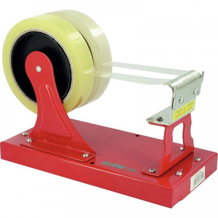 Dévidoir lourd d'atelier. En métal lourd. Dimensions rubans maxi : largeur jusqu'à 50 mm (2 bagues de supports pour utiliser 2 rouleaux de 25 mm). Longueur jusqu'à 100 m. Livré sans rubans.