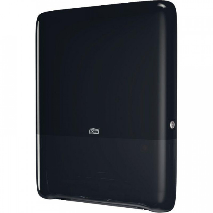 Distributeur d'essuie-mains PEAKSERVE mini H noir. Tork PeakServe® Mini Distributeur pour Essuie-mains continus™. La compression permet de proposer 250 % d’essuie-mains en plus, ce qui évite les ruptures inattendues –Tork PeakServe® : la dernière innovation conçue pour les sanitaires à fort trafic où le personnel doit optimiser le temps de nettoyage et maintenir une circulation fluide des usagers. Compatible avec les essuie-mains Tork PeakServe® Essuie-mains continus™, le système possède une capacité très élevée de plus de 1 230 essuie-mains, qui peuvent être distribués rapidement et sans interruption pour maintenir une circulation fluide. Les consommables compressés facilitent le rechargement à tout moment et sont faciles à stocker et transporter, ce qui permet au personnel de se concentrer sur le nettoyage et non sur le rechargement.