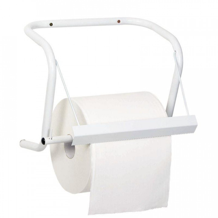 Dévidoir mural pour bobine blanc. Avec barre de découpe. A fixer au mur ou à poser sur le plan de travail. (Livré sans bobine d'essuyage).