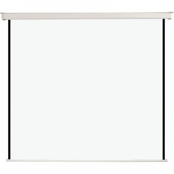 Ecran de projection mural 150x150cm. Surface blanc mat avec bordure noire pour un contraste maximum. Dos de la toile coloris noir pour éviter toute transparence. Fixation mur ou plafond. S'ajuste à tous les standards 4:3, 16:9, 16-10, etc... Mécanisme manuel. Garantie 2 ans.