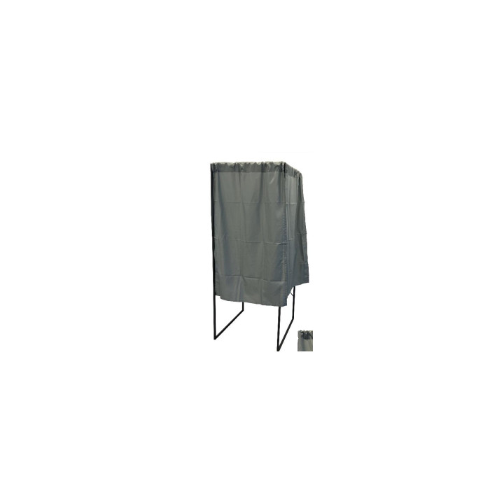 Isoloir standard 80x80x200cm. Cellule autonomes pouvant ëtre reliées entre elles grâce à des liaisons fournies Structure démontable en tube carré de 20 x 20 mm, stabilité assurée par croisillons Patins de protection du sol, Tablette amovible Rideau polyester IGNIFUGES 1,60 m sur les 4 côtes Liaisons pour relier les cellule entre elles