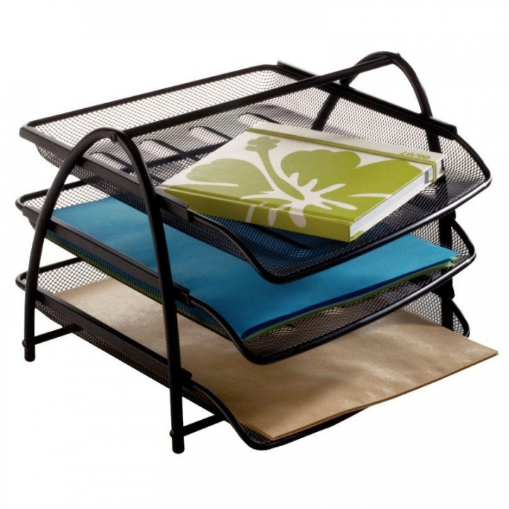 Lot de 3 corbeilles à courrier MESH en métal noires. Composé de 3 tiroirs coulissants pour documents jusqu'au format 24 x 32 cm. Chargement frontal de tous les documents. Accès facile aux documents grâce aux tiroirs coulissants. Livré à plat. Montage facile. ( 2 vis fournis). Métal Mesh ultra résistant et solide. Dimensions du set de 3 corbeilles : L29 x H24.5 x P34 cm. Hauteur de la corbeille : 3 cm. Poids net : 1.230 Kg. Garantie : 2 ans.