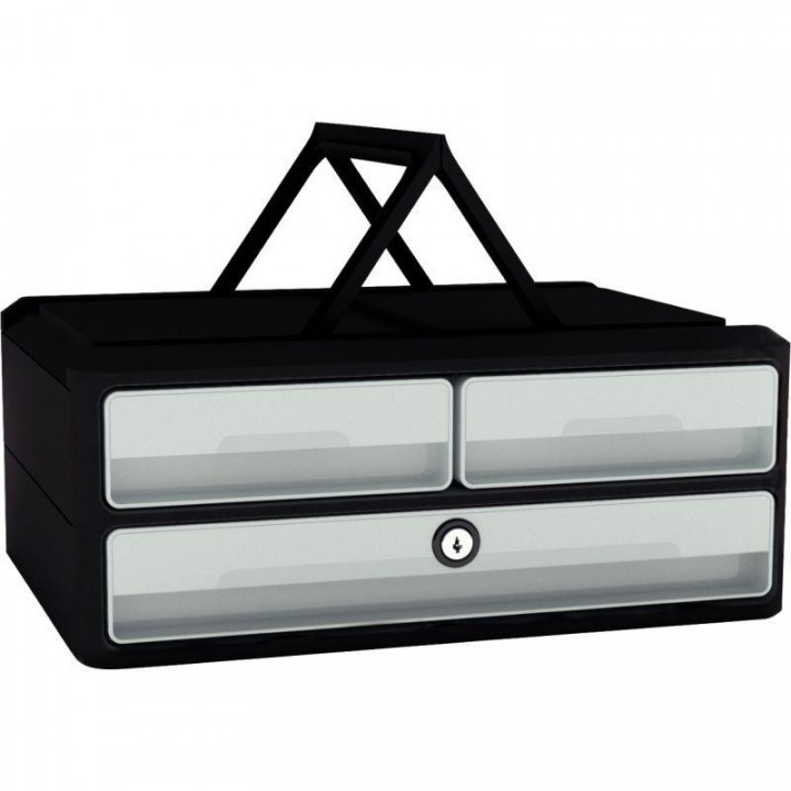 Module 3 tiroirs MOOVUP gris foncé/gris clair. En polystyrène résistant. Module agile pour répondre à l'évolution des modes de travail. Facilement transportable avec ses 2 poignées. Muni d'une serrure qui verrouille l'ensemble des tiroirs. Ultra robuste, peut servir de support d'écran.