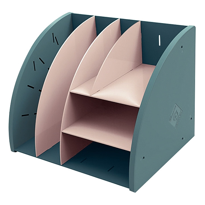 Organiseur de bureau 6 compartiments bleu pacifique et nude. Accessoire de bureau permettant de classer et trier tous vos documents format A4, A5 et A6 en vertical ou couché avec ses 6 compartiments. Garantie : 25 ans. Dimensions : L.35,6 cm x H.28,2 cm x P.28,2 cm.