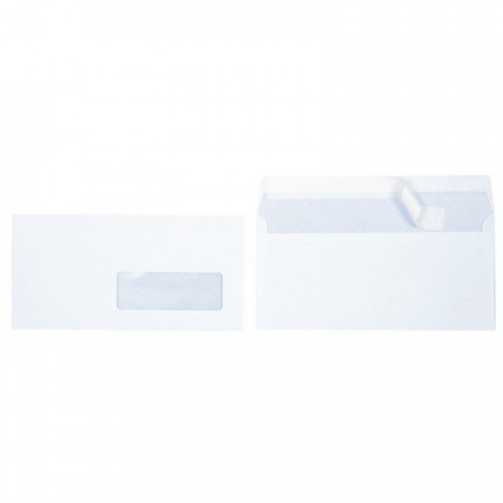 Boite de 500 enveloppes blanches DL 110x220 80g/m² fenêtre 35x100 bande de protection.