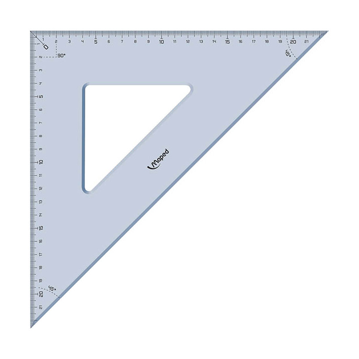 Equerre 45 degrés 32cm GEOMETRIC. Impression des graduations avec une encre UV pour une résistance optimale. 0 positionné dans l’angle droit : pour tracer et mesurer en même temps Graduation 22cm, hypoténuse : 32cm