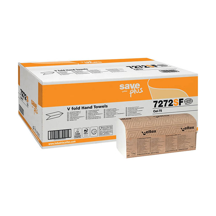 Carton 3 000 essuie main 2 plis blanc. Ouate recyclée, 2 plis, pliage en v Colis de 15 paquets de 200 feuilles