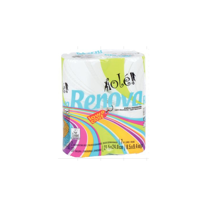 Lot de 2 rouleaux essuie-tout RENOVA Olé 2 plis.