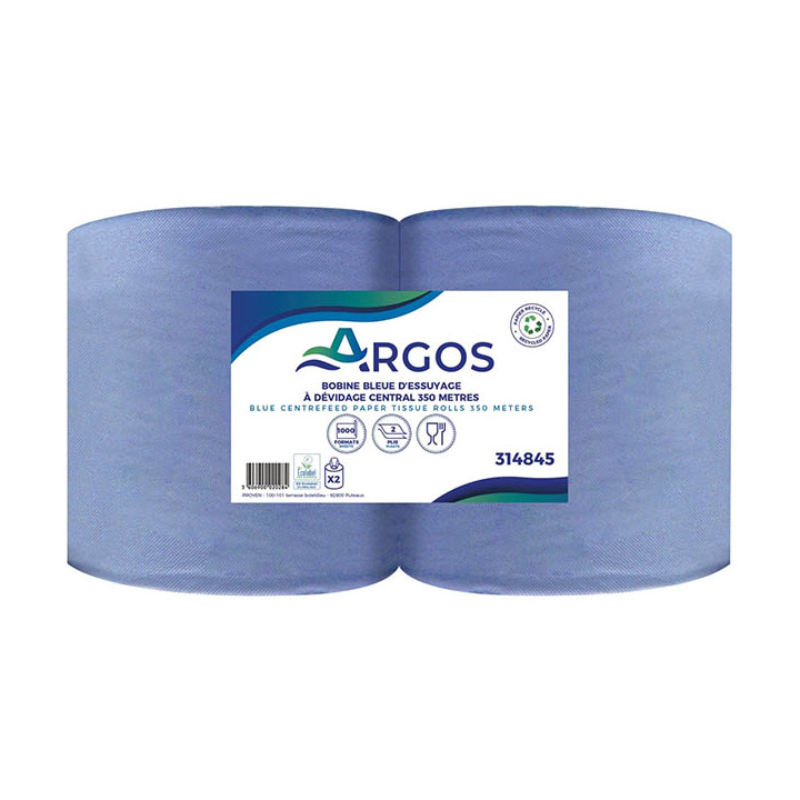 Lot de deux bobines d'essuie main industriel 350 mètres.