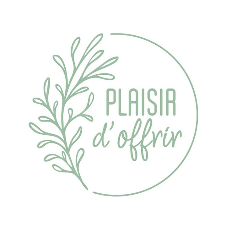 Rouleau de 500 étiquettes célébrations "Plaisir d'offrir" Ø35mm vert sur fond blanc. Idéal pour vos paquets cadeaux.