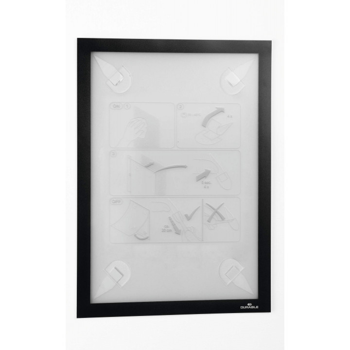 Changement rapide et facile de laffiche grâce à louverture du cadre sur les 4 côtés Film transparent traité antireflet et résistant aux UV. Panneau arrière en polystyrène résistant aux chocs. Kit de fixation inclus