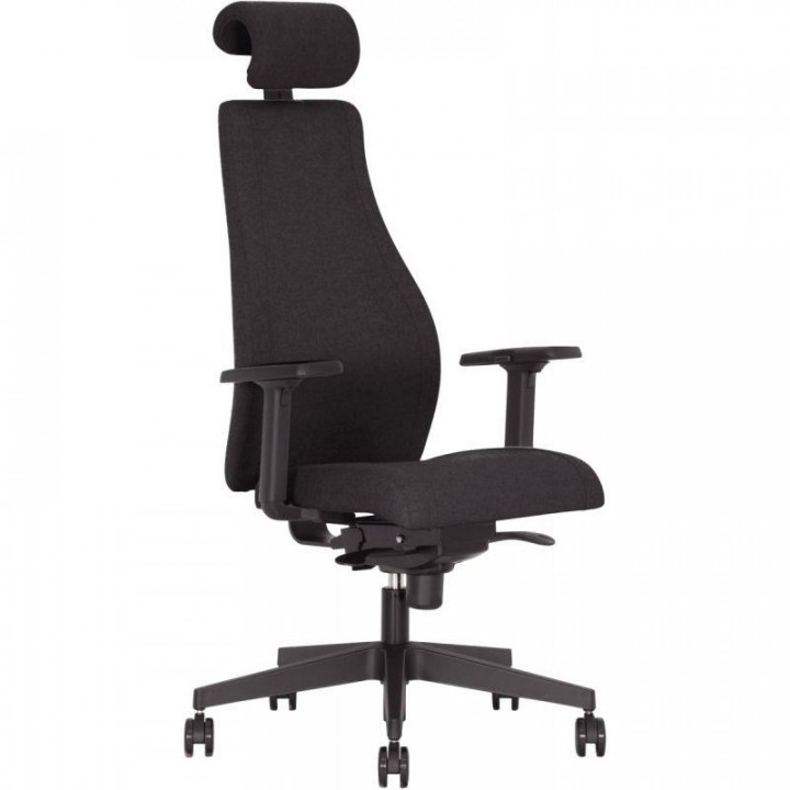 Siège manager ergonomique Moss noir. Mécanisme synchrone blocable 5 positions et réglable en intensité en fonction du poids de l'utilisateur. Hauteur d'assise réglable de 41 à 54cm. Assise: L48xP50cm rembourrée 50mm et densité 45kg/m3. Haut dossier 68cm rembourré 50mm et densité 40kg/m3. Système de sécurité anti-retour du dossier. Tissu non feu EN 2021.1 et 2 M1. Accoudoirs réglables en hauteur (8cm) et en largeur (3cm) et en avant-arrière 5cm. Maxi dossier double galbe enveloppant. Assise et dossier en tissu. Structure hêtre multipli 7 couches 10,5mm. Equipé de roulettes sol moquette. Tissu non feu EN 1021.1 et 2 M1. Normes NF EN 1335. Pour utilisateur jusqu'à 110kg. Garantie 5 ans.