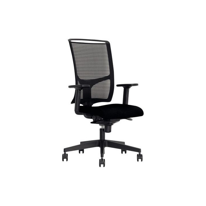 Siège opérateur Austin noir. Mécanisme synchrone 5 positions. Réglage de l'intensité du basculement en fonction du poids de l'utilisateur. Sécurité anti retour. Dossier résille H59cm. Assise L46xP48cm. Mousse épaisseur 50mm densité 35kg/m3. Hauteur d'assise réglable de 41 à 54cm. Piètement nylon avec roulettes Ø50mm sol moquette. Accoudoirs en option. Pour utilisateur jusqu'à 110kg. Garantie 5 ans.