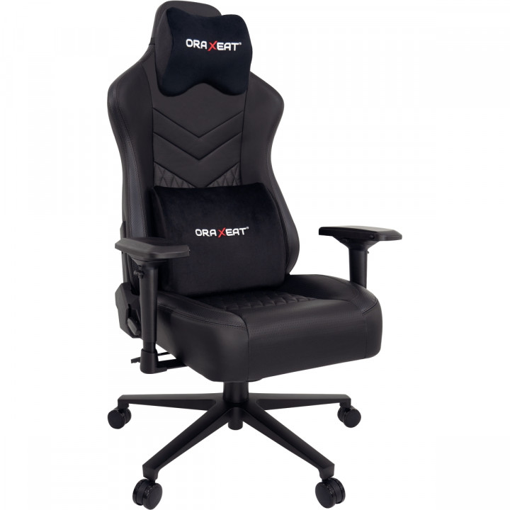 Siège gamer Oraxeat MX850 noir. Mécanisme multifonction et piston classe 4 pour des réglages de précision. Cadre en acier robuste de 22mm d’épaisseur. Assise en mousse densité 65kg/m3. Revêtement simili-cuir microperforé pour une aération optimale. Inclinaison du dossier de 90° à 160°. Base en aluminium renforcée avec des roues de 60mm. Accoudoirs 4D inclus. Taille recommandée 175cm à 200cm. Pour utilisateur Jusqu’à 150kg. Garantie 10 ans.