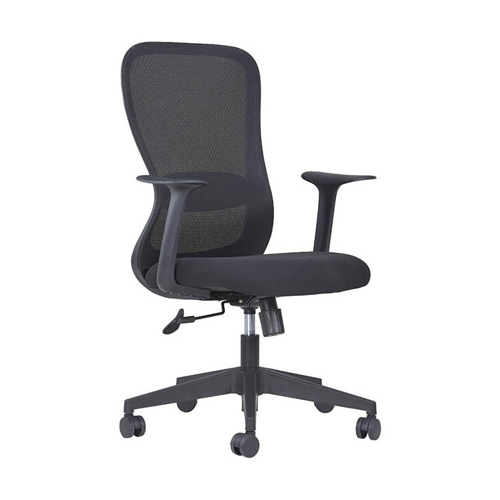 Siège GORDON noir. Mécanisme basculant centré. Dossier en résille noir H61xL46cm avec soutien lombaire. Assise L48xP48cm en tissu noir 35kg/m3 . Blocage du dossier 2 positions. Réglage de la tension de basculement grâce à la molette située sous l'assise. Accoudoirs fixes inclus. Roulettes Ø50mm. Pour utilisateur jusqu'à 110kgs. Garantie 5 ans.