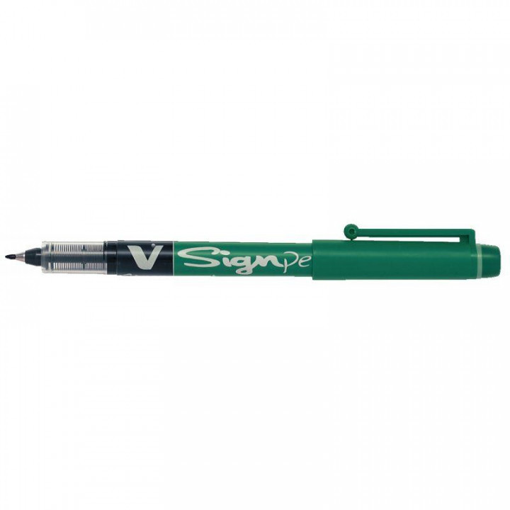 Feutre VSign Pen vert. Feutre moyen à encre liquide et niveau visible. Il vous assure un tracé souple et régulier. Pointe fibre polyesther. Écriture 0,6 mm.