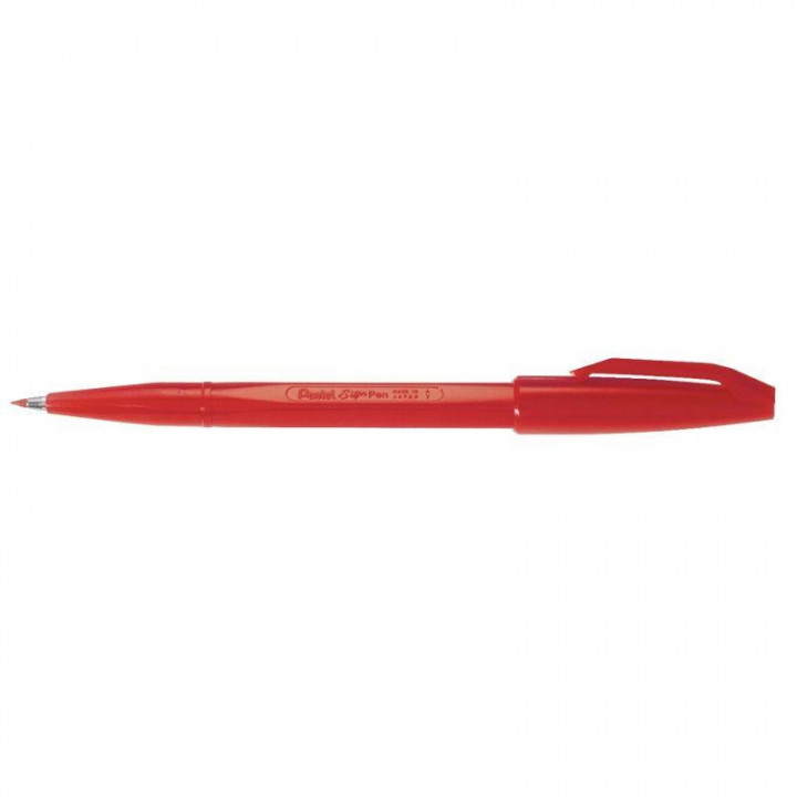 Feutre Sign Pen S520 rouge. Stylo à pointe acrylique fine.Produit sans PVC pour la protection de l'environnement Picto PENTEL.Longueur d'écriture 900 m.