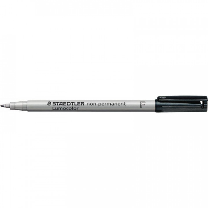Feutre Lumocolor effaçable 0,6mm noir. Pour la rétroprojection et la plupart des surfaces, encre effaçable sur surfaces lisses à l'aide d'un chiffon humide Encre soluble à l'eau Séchage rapide sur le support Corps et capuchon avec clip en polypropylène garantissant une longue durée de vie