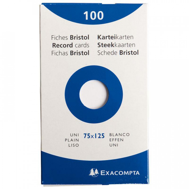 Boîte de 100 fiches bristol non perforées carte forte 205 g uni blanc format 7,5 x 12,5 cm. Rigide et solide, leur surface très lisse permet une écriture aisée. Présentation sous étui carton rigide.