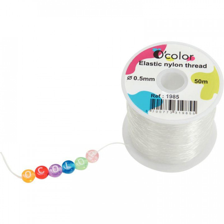 Bobine 50 mètres fil nylon élastique transparent diamètre 0.50 mm.
