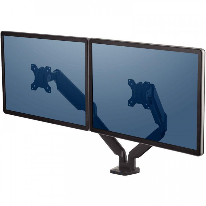 Bras porte-écrans double Platinum Series. 2 ports USB situés à la base du produit. Chaque bras supporte un écran jusqu'à 32" et pesant jusqu'à 8 kg. 2 ports USB. Passe-câbles intégré pour un encombrement minimum. Répond aux normes de fixation VESA - 75x75 / 100x100. Garantie 5 ans.