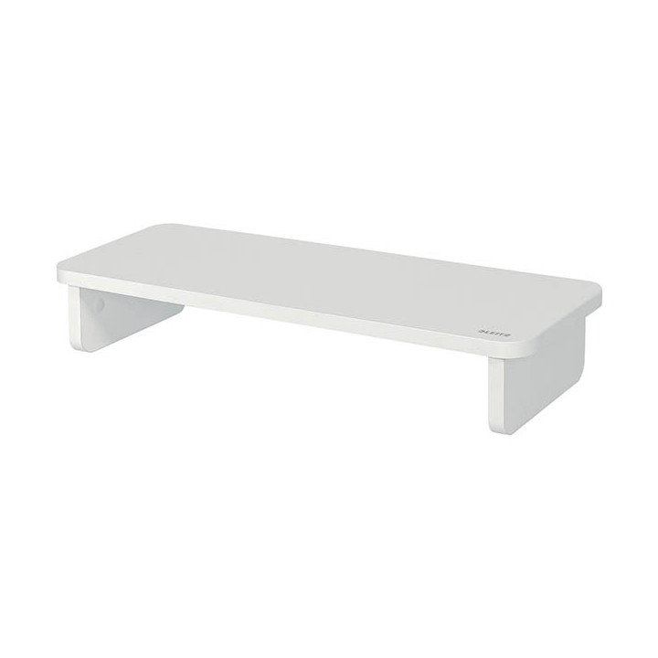 Support écran Ergo blanc. Ce support ergonomique surélève votre écran afin d'augmenter votre confort visuel et d'améliorer votre posture. L'espace de rangement situé sous le support mesure 47,9 x 21,0 x 8,4 cm (LxPxH) pour un clavier d'une largeur maximale de 47 cm. Il est compatible avec les écrans jusqu'à 24" et peut supporter un poids maximal de 20 kg. Livré à plat, il est facile et rapide à assembler. Dimensions : 56 x 21 x 10 cm. Garantie 2 ans.