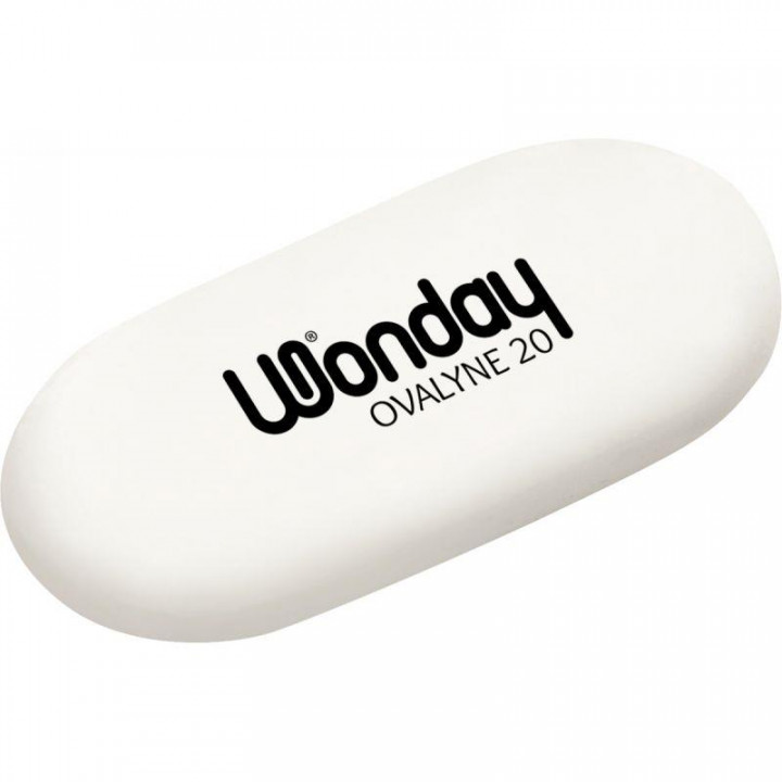 Boîte de 20 gommes Ovalyne blanches. Sans PVC. Blanche. Dim : L 5,6 x H 2,5. Ep. 1,1 cm.