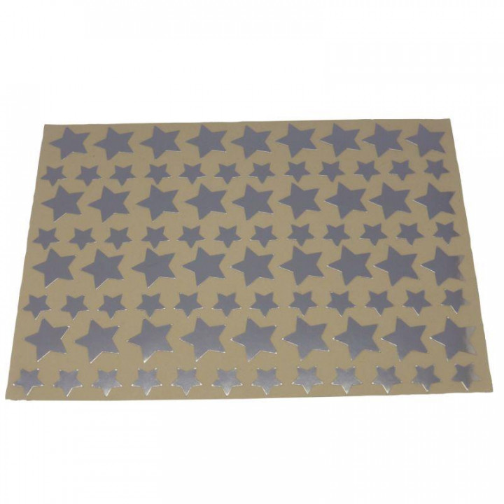 Pochette de 672 gommettes étoiles métallisées argentées. 8 planches format 15 x 21 cm. Interdit aux moins de 3ans