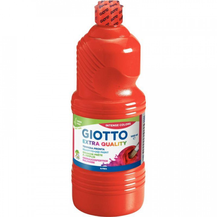 Flacon de 1L de gouache liquide GIOTTO coloris rouge vermillon. Prête à l'emploi, formule riche en pigments de qualité supérieure. Fort pouvoir couvrant, excellent rendu. Gouache homogène et crémeuse facile à étaler. Excellente résistance à la lumière. Flacon avec poignée ergonomique. Diluable à l'eau, s'utilise sur papier, bois, carton… ATTENTION présence de céréales et d'amidon.
