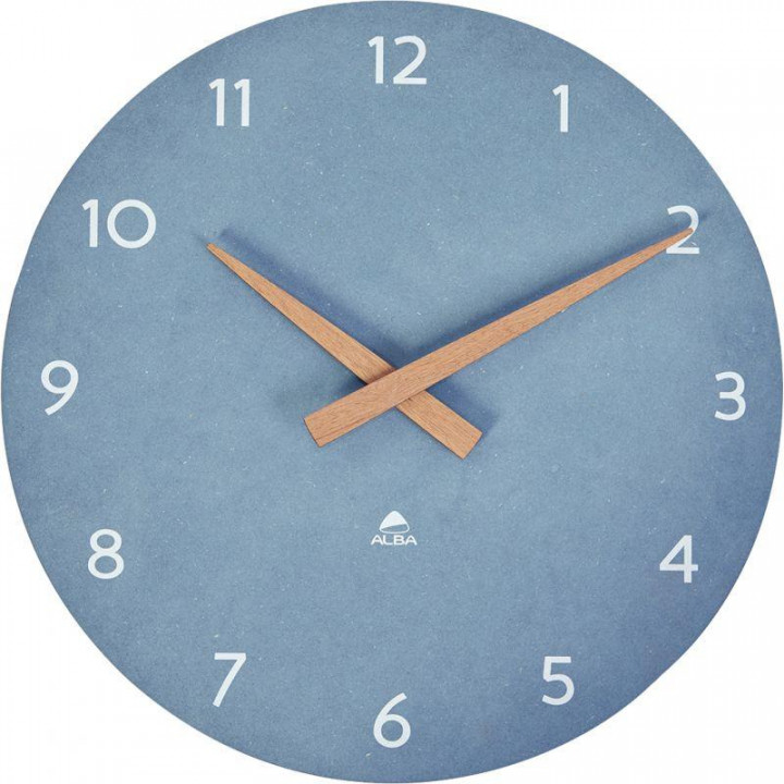 Horloge diamètre 30cm Milena bleu et bois. Stylisez votre espace de travail avec cette horloge murale aux lignes épurées et au look moderne. Identification immédiate de l’heure grâce à ses aiguilles de couleur bois foncé sur fond bleu. Mouvement à quartz haute précision. Silencieuse et précise. Construction de qualité pour une solidité et une longue durée de vie de l'horloge. Fonctionne avec 1 pile LR06/AA non fournie. Poids : 386g. Garantie 3 ans.