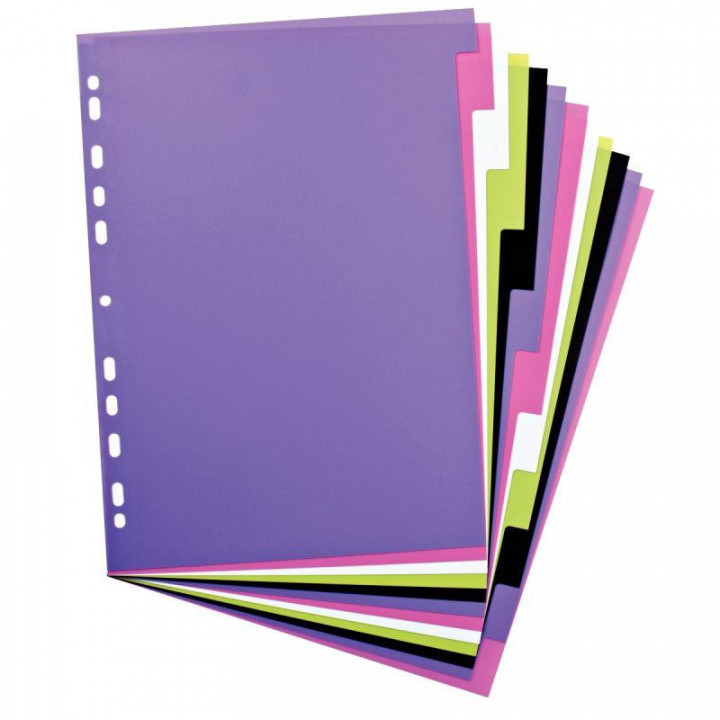 Jeu de 12 intercalaires en polypropylène MY COLOUR, format A4. Touches neutres. Polypropylène opaque 30/100ème rigide et indéchirable. Sommaire à personnaliser imprimable.