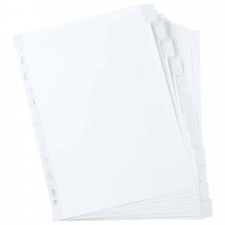 Jeu de 12 intercalaires personnalisables Index Maker en carte format A4. En carte bristol blanche 190 g. Sommaire et touches personnalisables. Réalisez en quelques instants avec votre logiciel habituel des présentations professionnelles et valorisantes : rapports, dossiers, appels d'offres... (formats pré paramétrés sur www.avery.fr/adpo). Sommaire, perforation et touches renforcées. Livré avec une planche d'étiquettes imprimables ou inscriptibles à coller sur les touches des intercalaires.