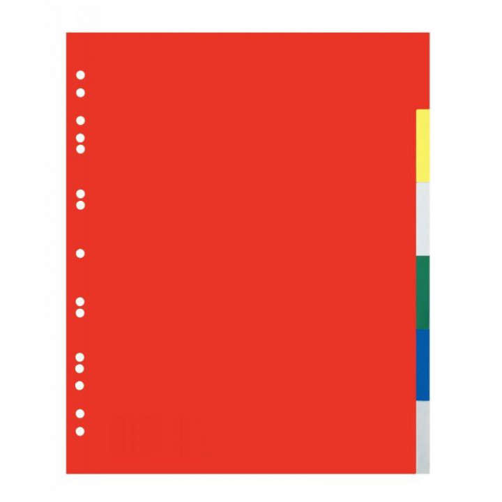 Jeu de 6 intercalaires en polypropylène coloré 12/100ème, format A4+. Livré avec un sommaire numéroté à personnaliser. Format 23 x 30,2 cm.