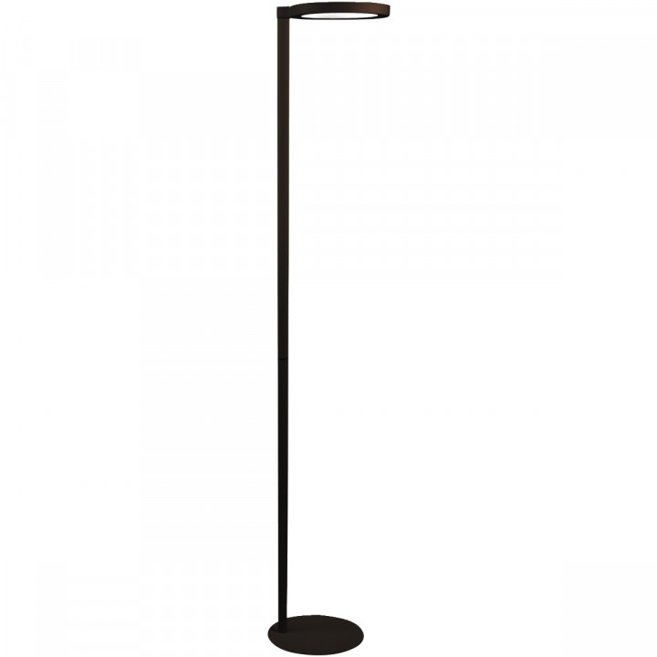 Lampadaire LED Opus Socle noir. 51W, 5200 Lumens. Durée de vie: 40 000 heures. Eclairage direct et/ou indirect pour une répartition lumineuse équilibrée. Réglage de l'intensité lumineuse. Interrupteur tactile sur le lampadaire. Module LED intégré. Dim: H. 182xØ tête 26 x Ø socle 28 cm. Garantie 2 ans.