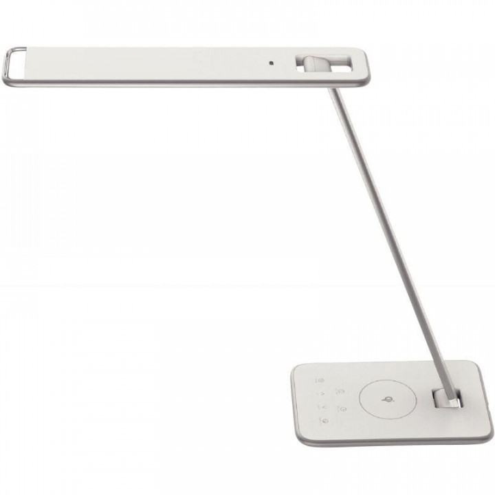 Lampe LED Jazz blanc. LED, 13W, 977 Lumens. Durée de vie : 50 000 heures. L’interrupteur tactile sur le socle à 4 niveaux d’intensité lumineuse permet également le réglage de la couleur d’éclairage à 3 niveaux : travail, lecture et repos. Timer : mise en veille automatique au bout de 1 heure. La lampe est équipé d’un port USB et d’un chargeur de téléphone sans fil (certifié QI). Module LED intégré. Dim : H. 44,5 cm. Diam du socle : 20 cm. Tête : L32,5 cm. Poids : 1.1 Kg. Garantie 2 ans. Ce luminaire contient une source de classe G