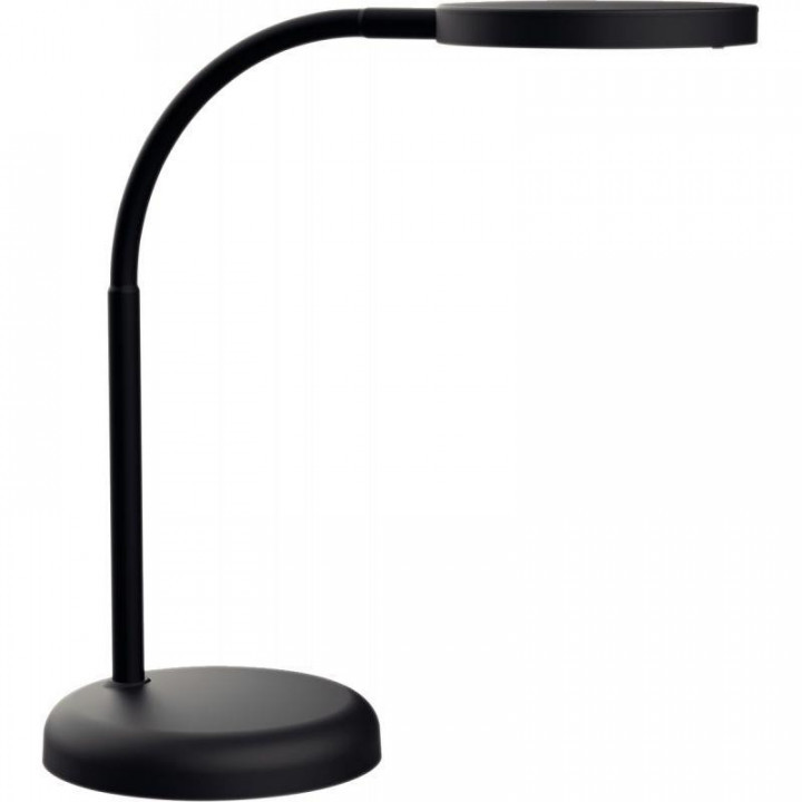 Lampe LED MAUL Joy noir. Equipée de 16 LED, 3000 Kelvin, blanc chaud. Luminosité environ de 1880 lux à 33 cm de distance, flux de 769 lumens. Lumière asymétrique pour éviter des reflets sur l'écran. Consommation d’énergie 5 kWh/1000h. Bras robuste de 35,8 cm à zone flexible pour régler l’angle d’éclairage. Hauteur en position normale de travail : 34 cm. Interrupteur sur la tête du luminaire Ø env. 11,8 cm, orientable et inclinable . Antireflets Socle solide Ø 13,7 cm. La durée de vie des LED est de 20.000 heures Les lampes ne peuvent pas être changées. Poids 951 g. Garantie 2 ans.