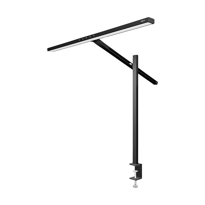 Lampe LED ELITE. LED, 24W, 2543 Lumens. Durée de vie : 20 000 heures. Eclairage asymétrique, anti-éblouissement. Bras rotatif (+/- 90°) et glissant. Gain de place grâce à sa pince qui se place facilement derrière votre ordinateur. Module LED intégré. H : mini 20 cm, H : maxi 90 cm. Poids 1.69 kg