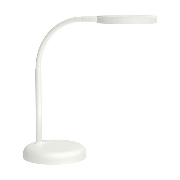 Lampe LED MAUL JOY blancche. Equipée de 16 LED, 3000 Kelvin, blanc chaud. Luminosité environ de 1880 lux à 33 cm de distance, flux de 769 lumens. Lumière asymétrique pour éviter des reflets sur l'écran. Consommation d’énergie 5 kWh/1000h. Bras robuste de 35,8 cm à zone flexible pour régler l’angle d’éclairage. Hauteur en position normale de travail : 33.5 cm. Interrupteur sur la tête du luminaire Ø env. 11,8 cm, orientable et inclinable . Antireflets Socle solide Ø 13,7 cm. La durée de vie des LED est de 15.000 heures Les lampes ne peuvent pas être changées. Poids 944 g. Garantie 2 ans.