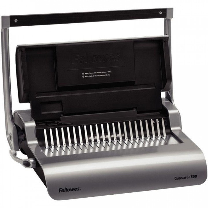 Perforelieuse QUASAR+. Relie jusqu'à 500 feuilles.- Perfore jusqu'à 25 feuilles.- Perforation manuelle.- Sélecteur d'épaisseur du diamètre de la reliure et tiroir de stockage des consommables.- Perforation et reliure simultanée.- Perforation verticale pour une perforation toujours parfaite.- Poignée de perforation transversale pour un plus grand confort.- Butée de taquage pour relier tout les formats de document.Garantie 2 ans