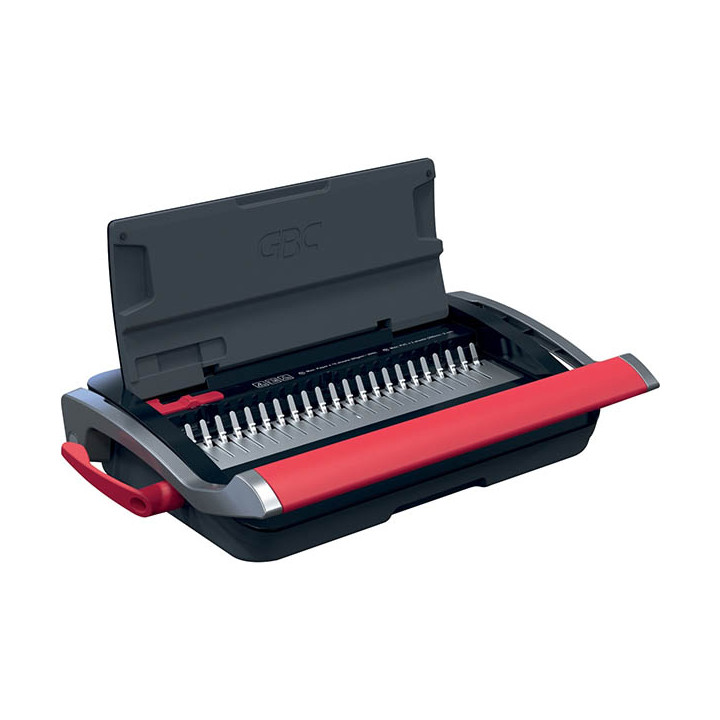 Perforelieur GBC CombBind CB15. Perfore jusqu'à 15 feuilles de 80 gr/m² et relie jusqu'à 165 feuilles. Utilisation individuelle. Perforation manuelle à poignée double pour une reliure fluide avec un minimum d'effort. Ajustement de la marge latérale et profondeur de marge fixe pour une reliure précise et uniforme. Bac à confettis et compartiment de rangement intégrés. Diamètre maximum des peignes: 19mm. Pour format A4 et A5. Garantie 2 ans.