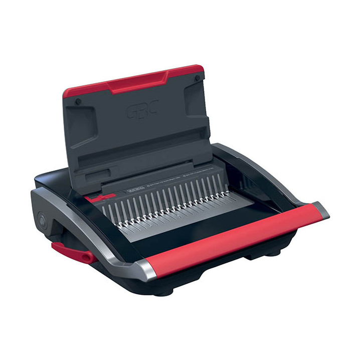Perforelieur GBC CombBind CB25. Perfore jusqu'à 25 feuilles de 80 gr/m² et relie jusqu'à 390 feuilles. Utilisation intensive. Perforation manuelle à poignée double pour une reliure fluide avec un minimum d'effort. Ajustement de la marge latérale et profondeur de marge fixe pour une reliure précise et uniforme. Bac à confettis et compartiment de rangement intégrés. Diamètre maximum des peignes: 45mm. Pour format A4 et A5. Garantie 2 ans.