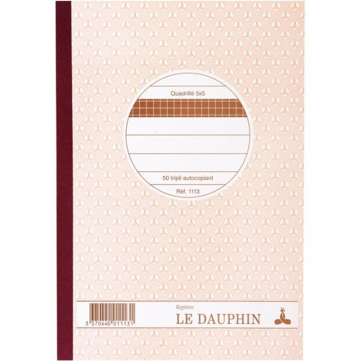 Manifold NCR format 148 x 210mm 50 tripli. Couleur AVOINE NCR = No Carbon Required (Papier qui s'imprime tout seul quand on appuie dessus). Papier autocopiant tripli quadrillé petits carreaux 5X5. 50 feuillets numérotés. Format vertical 21 x 14,8 cm. Les 1er et 2ème feuillets sont micro perforés et se détachent facilement, le 3ème feuillet reste dans le carnet - couverture vernie.