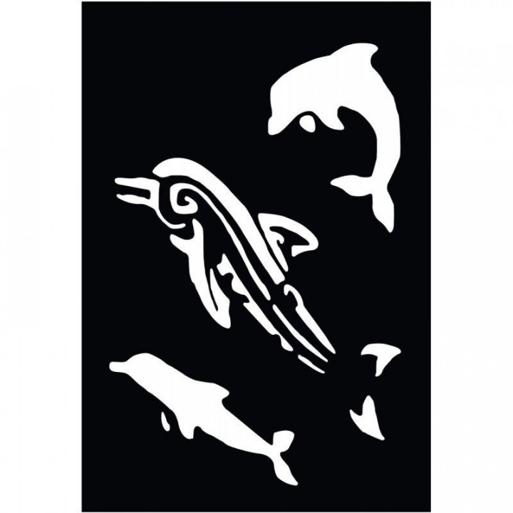 Lot de 10 pochoirs adhésifs repositionnables, assortiment 2. Pochoirs souples, adhésifs et repositionnables qui s’utilisent aussi bien pour réaliser un motif sur du tissu (t-shirts, jeans, vestes, sacs, nappes, coussins) que pour faire un tatouage éphémère sur la peau avec du maquillage. 10 modèles assortis : hibiscus, papillons, colibri, salamandres, pirate, licorne, nénuphar, chouette, tortue maori, dauphins. Dimensions d'une planche de pochoirs (L x l) : 10 x 7 cm.
