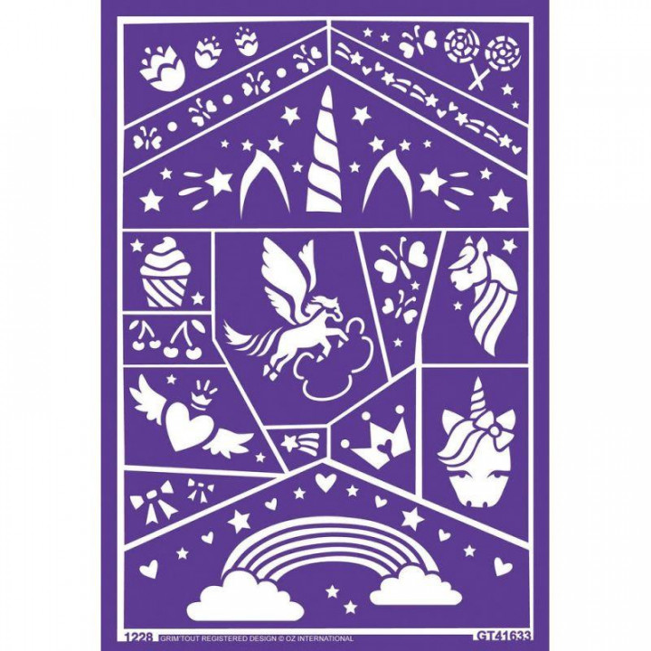 Lot de 4 pochoirs maquillage assortis 4 thèmes : licorne, indien, fée et Halloween Lavables, adhésifs non irritants et repositionnables et souples pour s'adapter à la forme du visage, de la main A partir de 3ans. 4 thèmes : licorne, indien, fée et Halloween Lavables, adhésifs non irritants et repositionnables et souples pour s'adapter à la forme du visage, de la main A partir de 3ans
