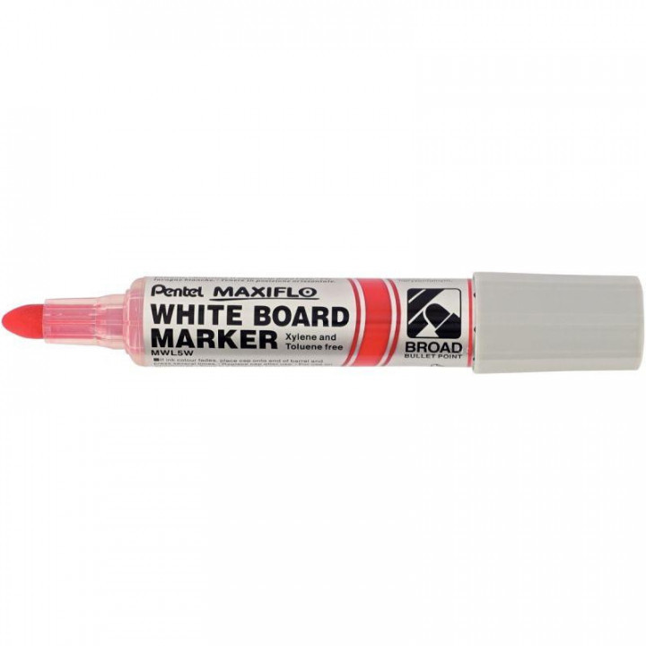 Marqueur tableau blanc Maxiflo pointe ogive 8mm rouge. Pointe de 8 mm ogive ultra large, tracé 4 mm. Ecriture ultra confortable fluide et lumineuse. Système de bouton poussoir pour réencrer la pointe.