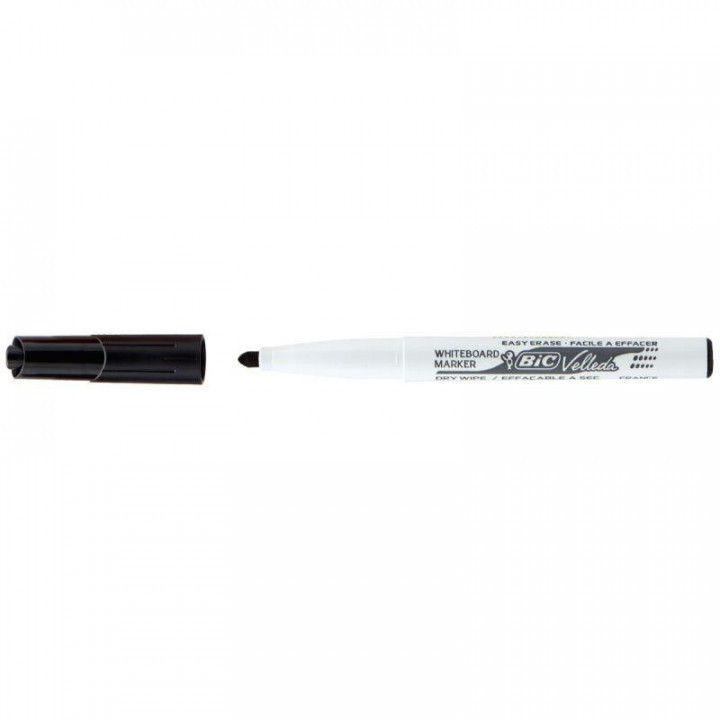 Feutre Velleda 1741 pointe moyenne noir. Pointe moyenne 4,5mm, tracé: 1,4 mm. Encre cétone. Corps plastique, capuchon ventilé.